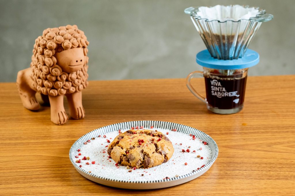Dupla dos Sonhos: Café filtrado no método Koar, com notas sensoriais de melaço, leve frutas amarelas, acidez cítrica média, corpo médio, doçura alta; Cais do Recife, cookie com especiarias de cravo, canela, gengibre, pimenta rosa e noz-moscada.
