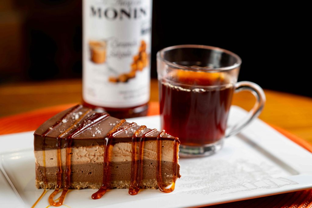 Dupla dos Sonhos: Café filtrado no método Hario V60, com notas saborosas de frutas amarelas, chocolate e caramelo; e sobremesa feita com base crocante de chocolate, mousse de chocolate meio amargo e um delicado creme de chocolate ao leite, finalizada com calda de caramelo salgado e um toque de flor de sal.